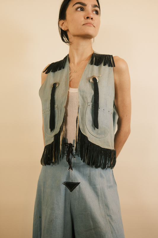 60's Pioneer Wear Denim and Suede Fringe Culotte and Vest Set