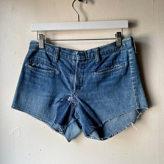 70s Faded Stitched Denim Cut Off Shorts 30"W (women's 4)