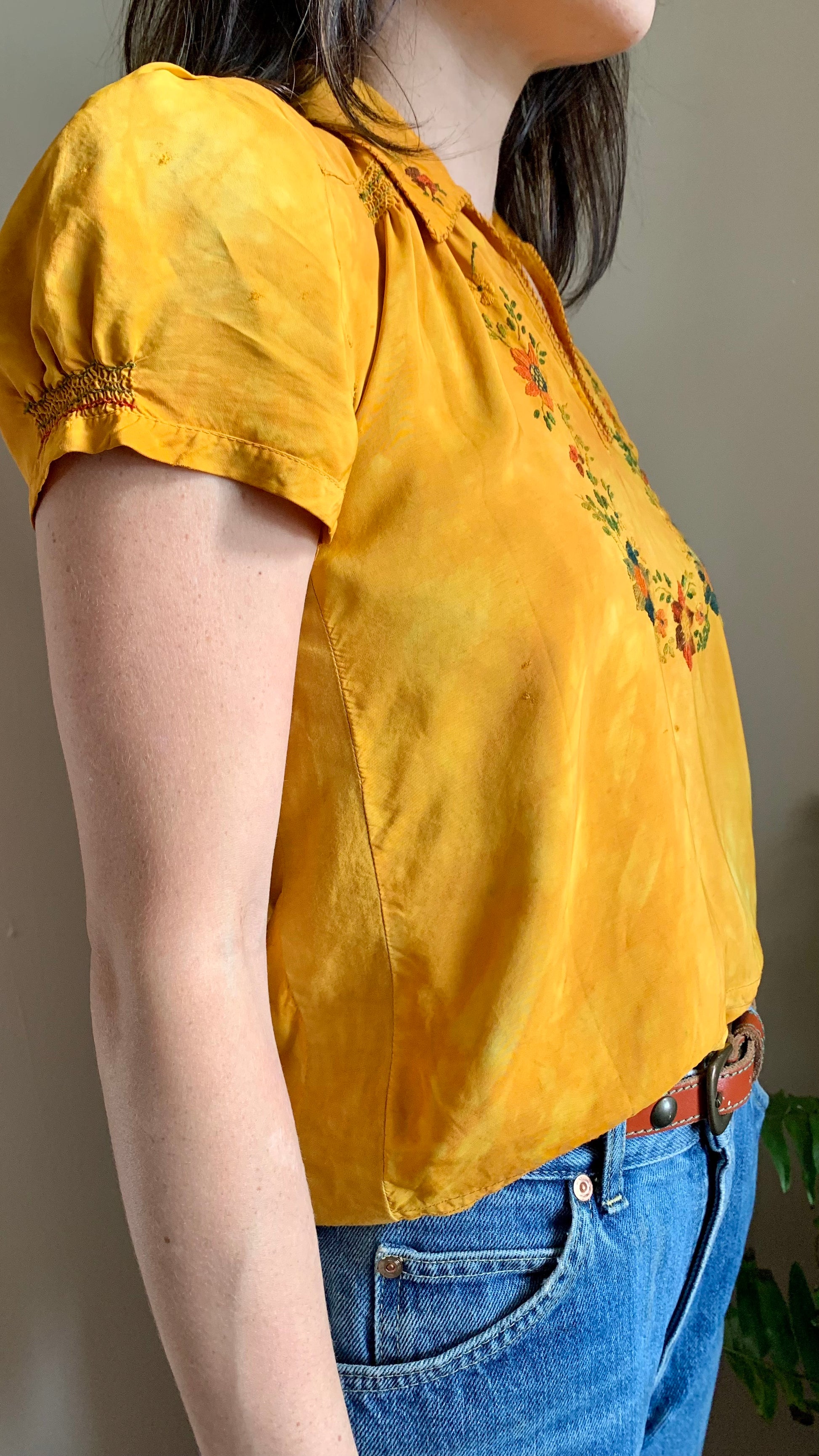 1930s Marigold Silk Hungarian Embroidered Blouse -as is- (XS)