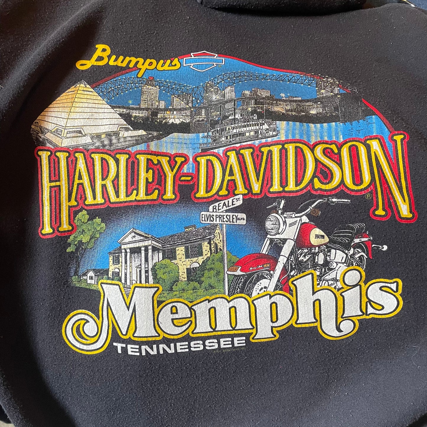 80s Harley Davidson zip-up hoodie. Hoodie featurues a Memphis graphic on the back.