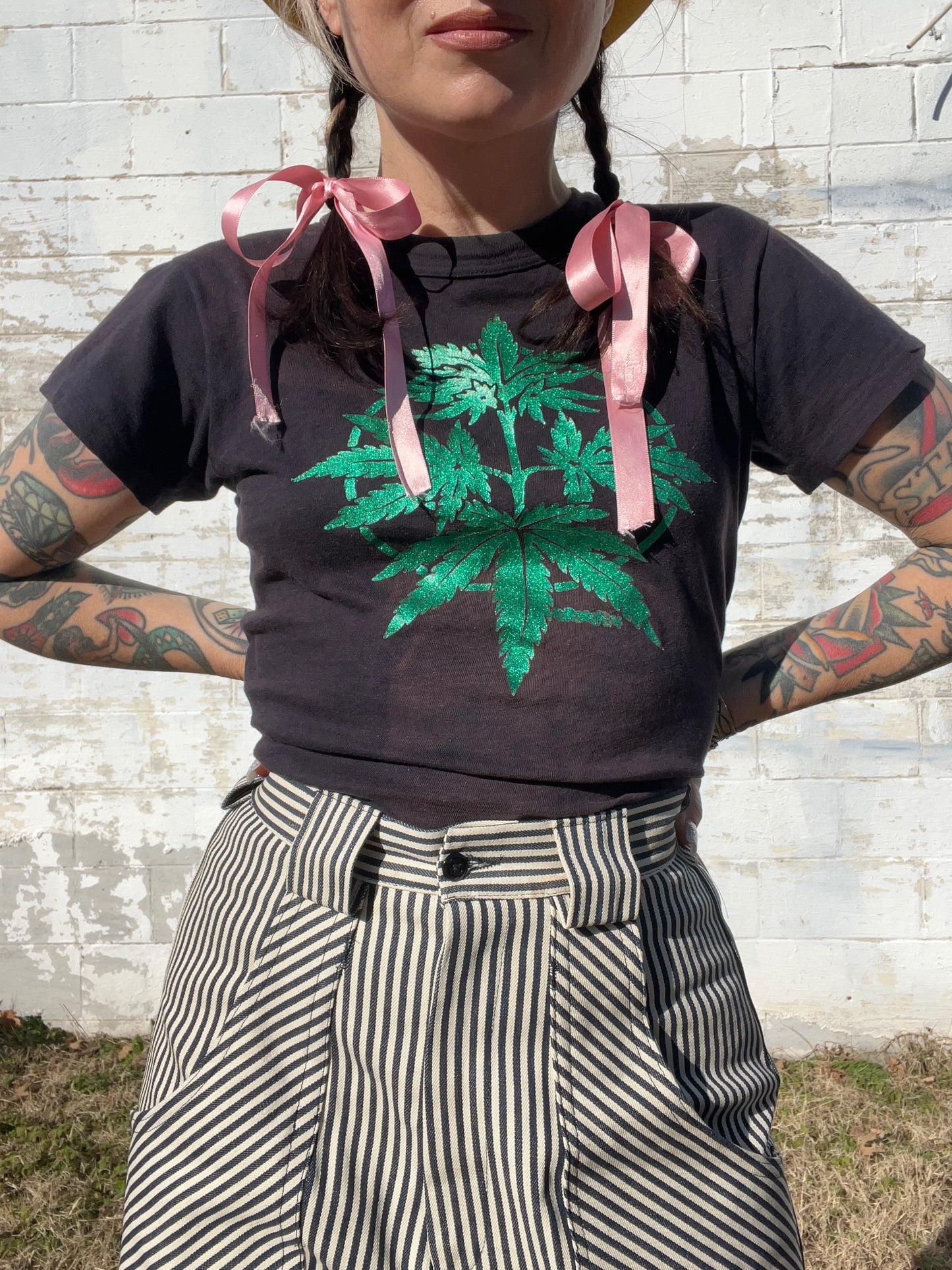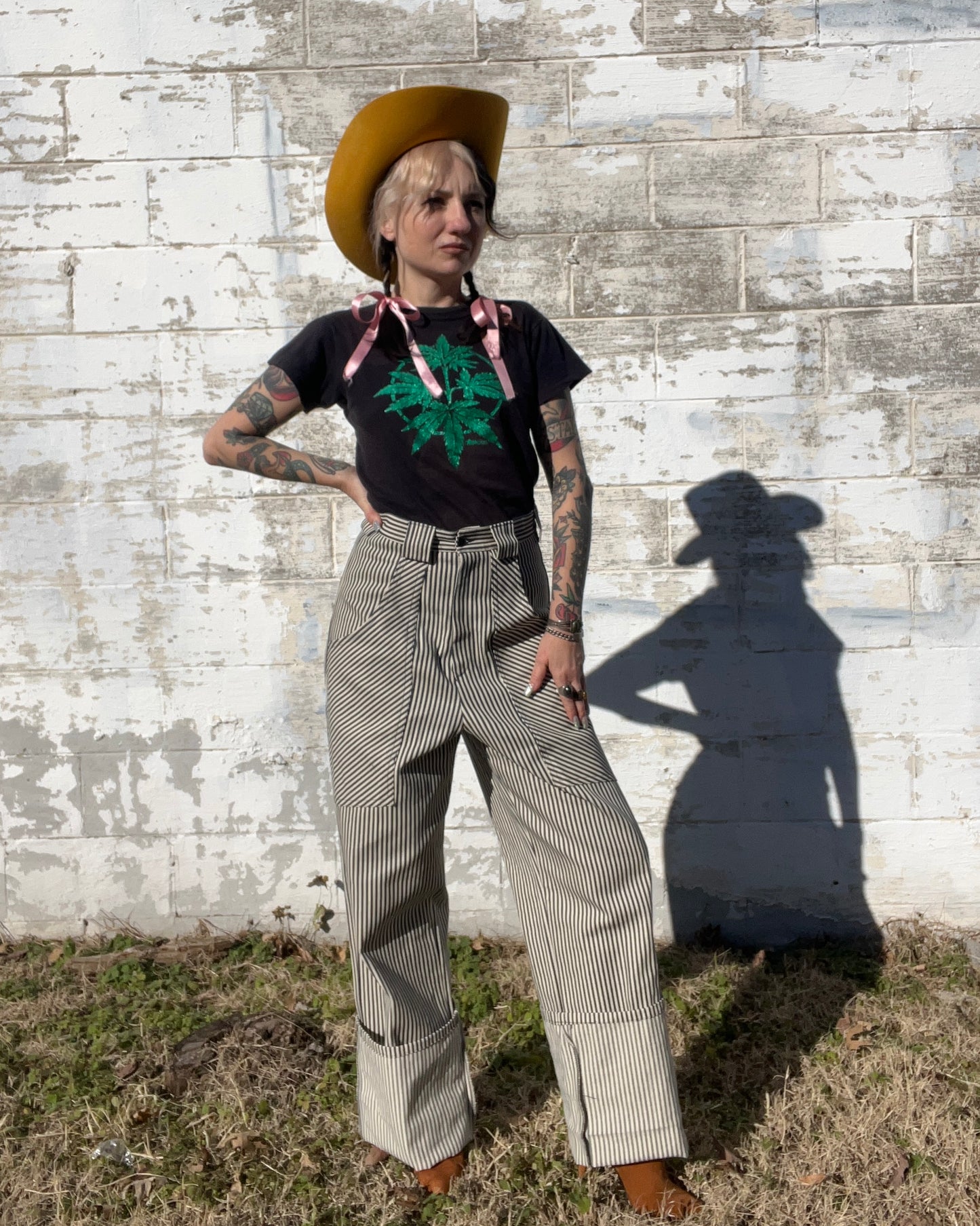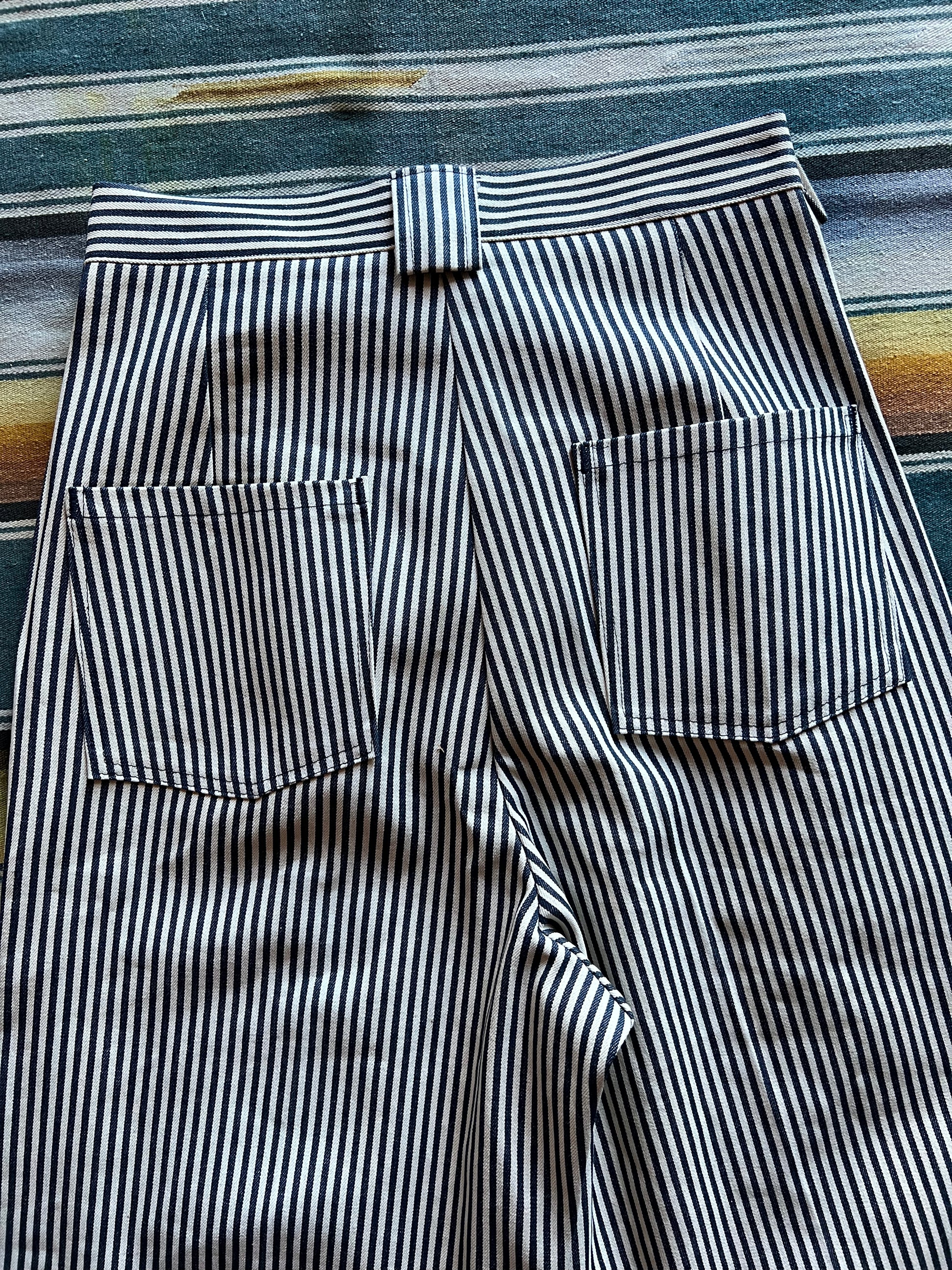 Amazing 1970s hickory stripe railroad uniform pants. Super high rise and super long inseam - great for a tall person but also look cool cuffed!