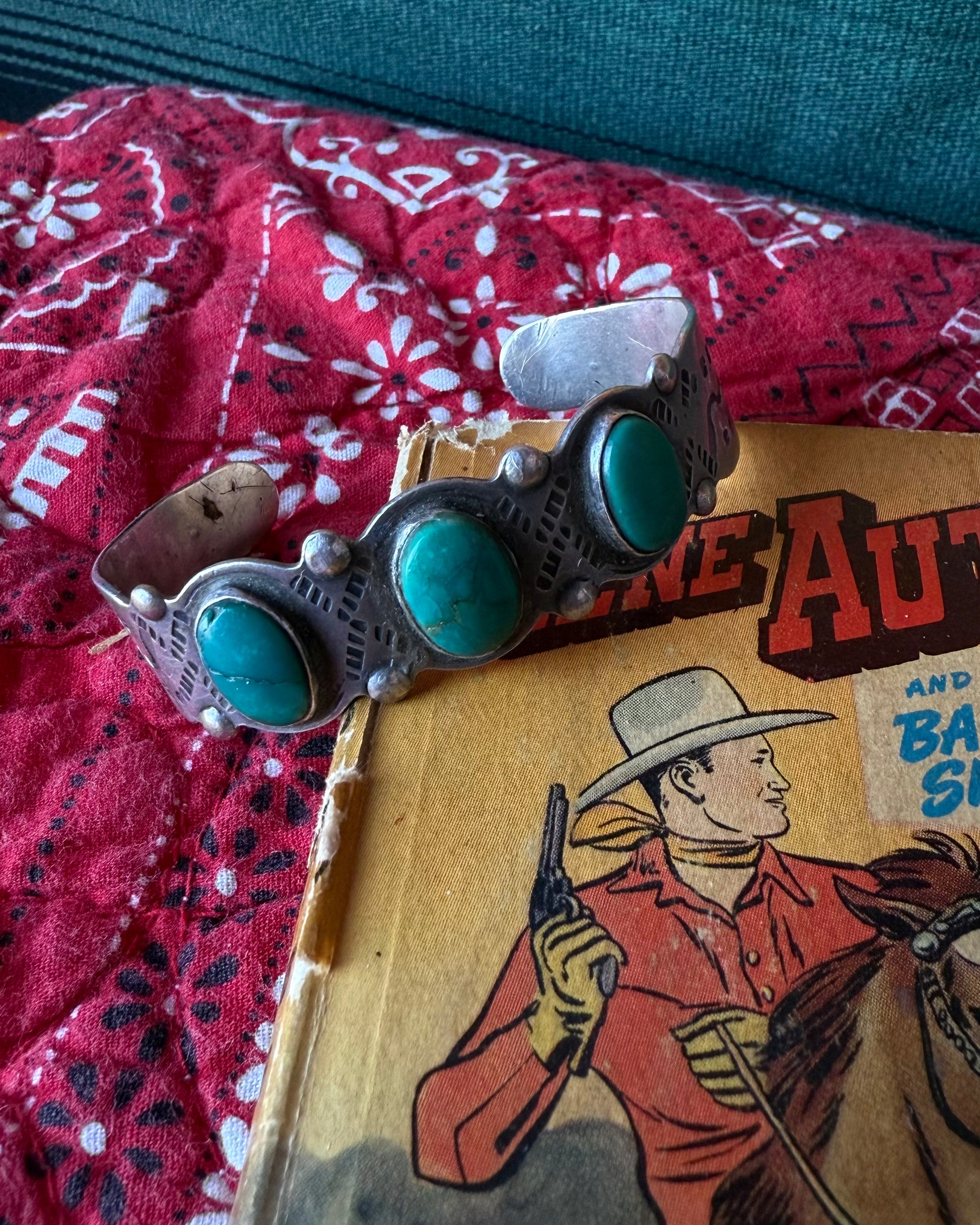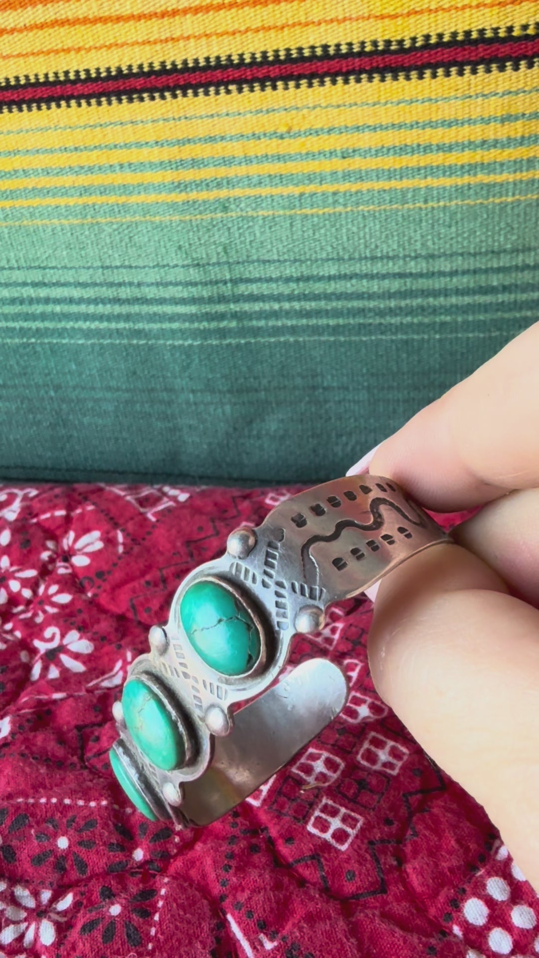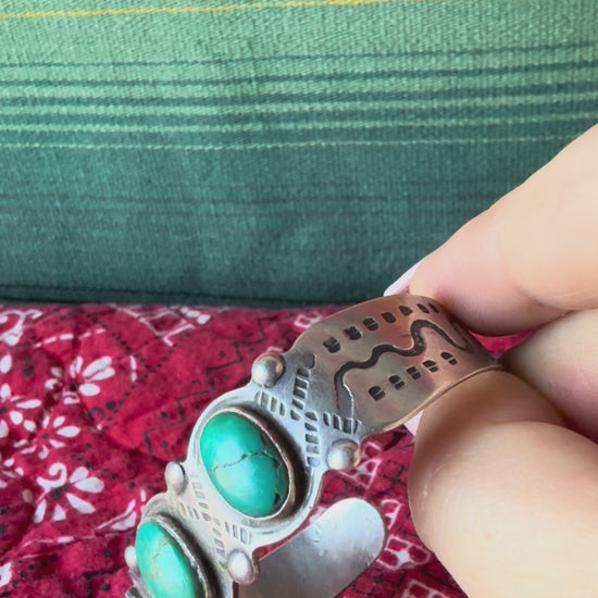 Fred Harvey Green 3 Stone Snakes Cuff