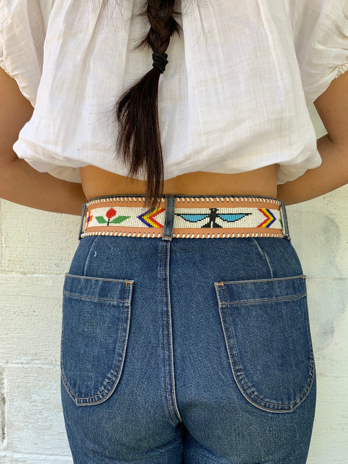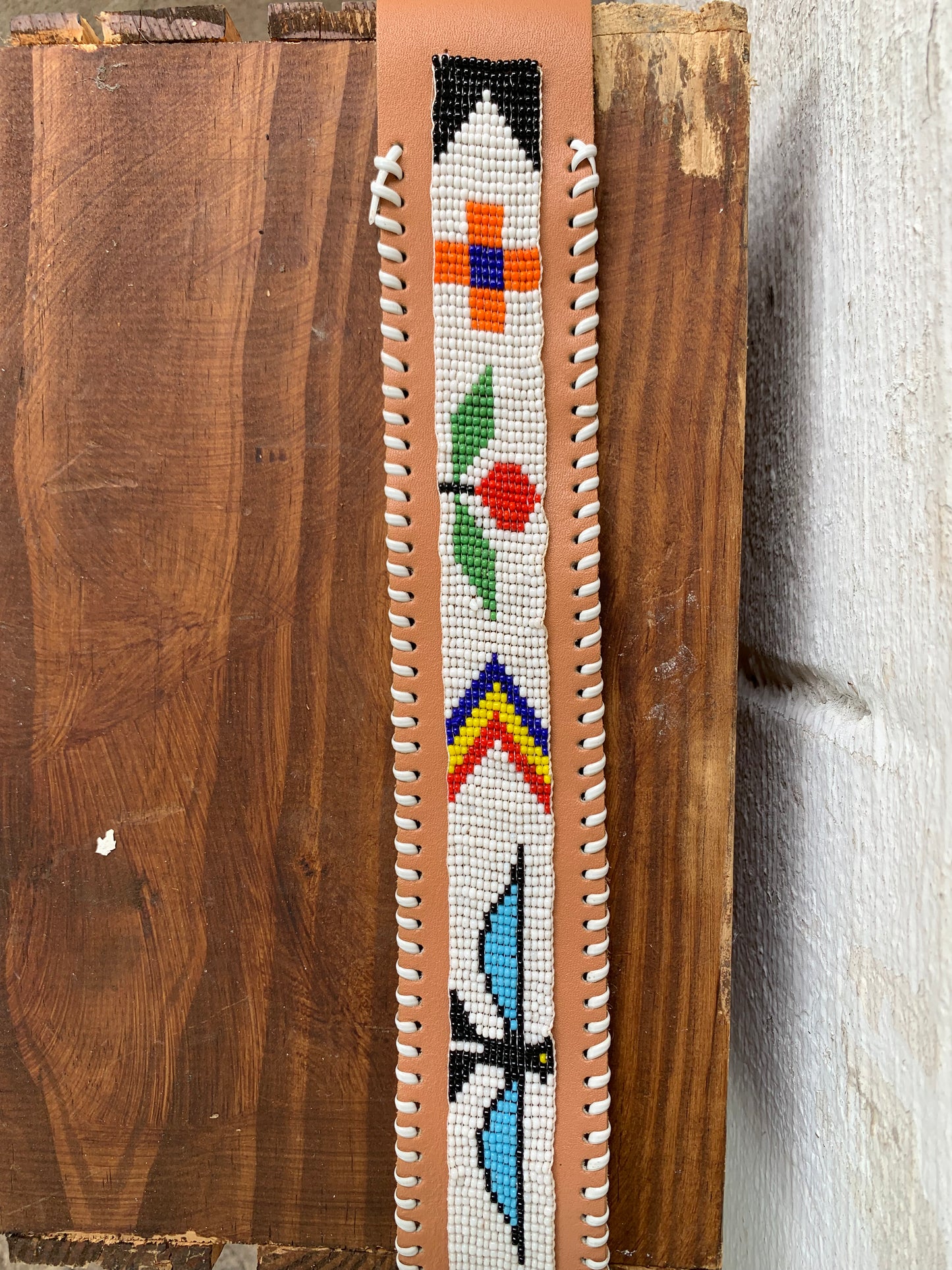 Handcrafted with exquisite attention to detail, this belt showcases traditional Navajo beadwork in vibrant colors, adding a touch of Native American-inspired artistry to your ensemble. Made from high-quality leather, this belt not only offers a unique and eye-catching accessory but also ensures durability and long-lasting wear.