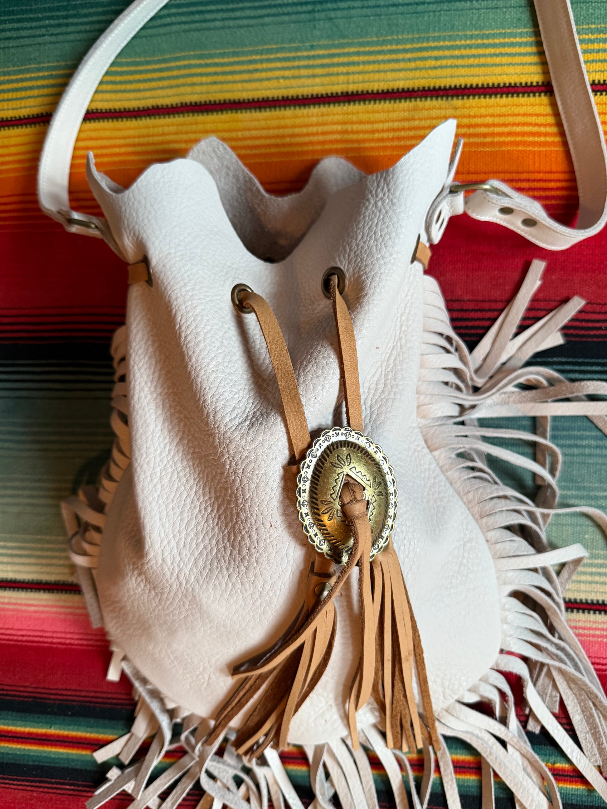 Native Rainbow White Leather Fringe Bag