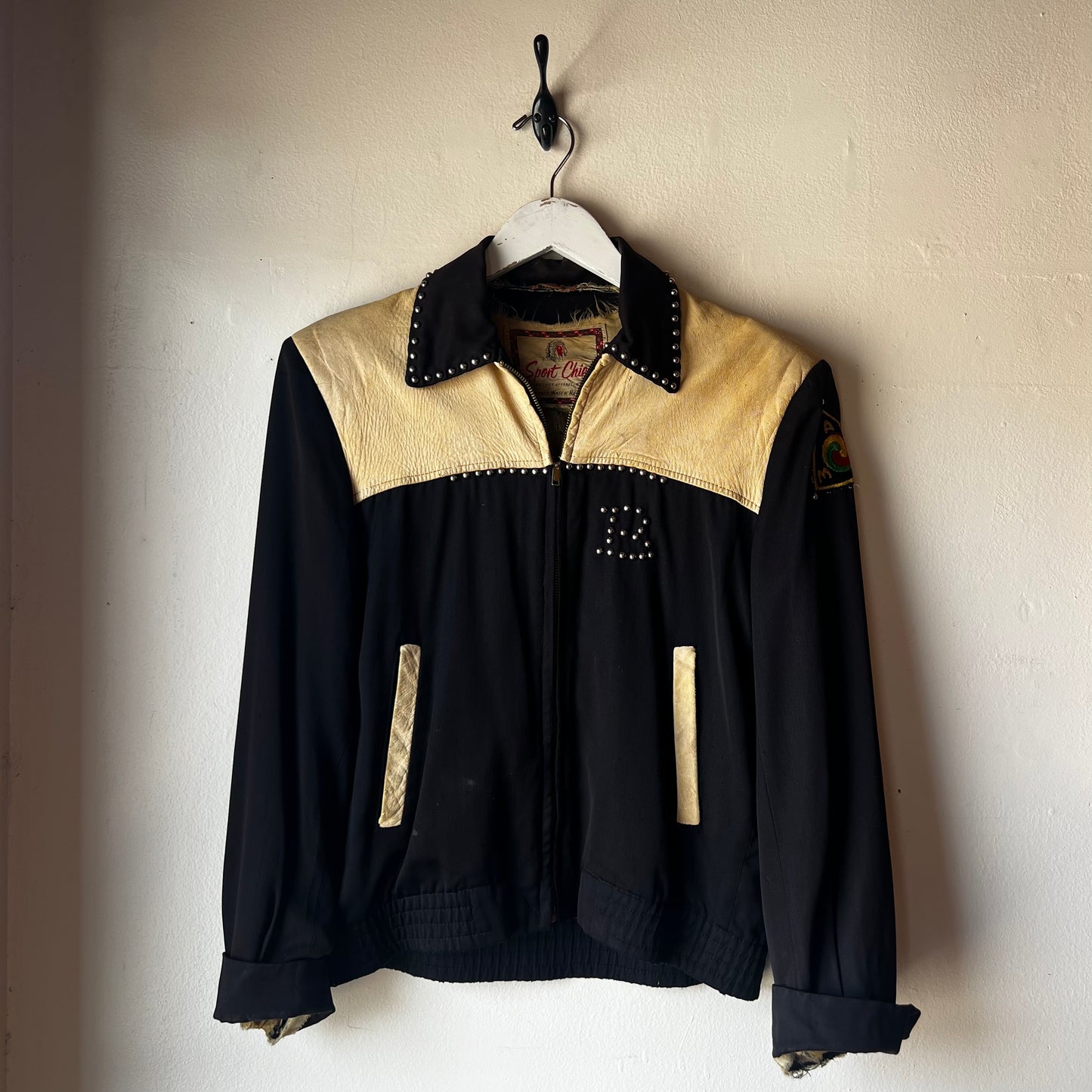 Super Rare Vintage Harley Davidson Sport Chief Jacket with studded collar and Harley Logo on back. White leather paneling and a studded B on front! Jacket is sold as is.