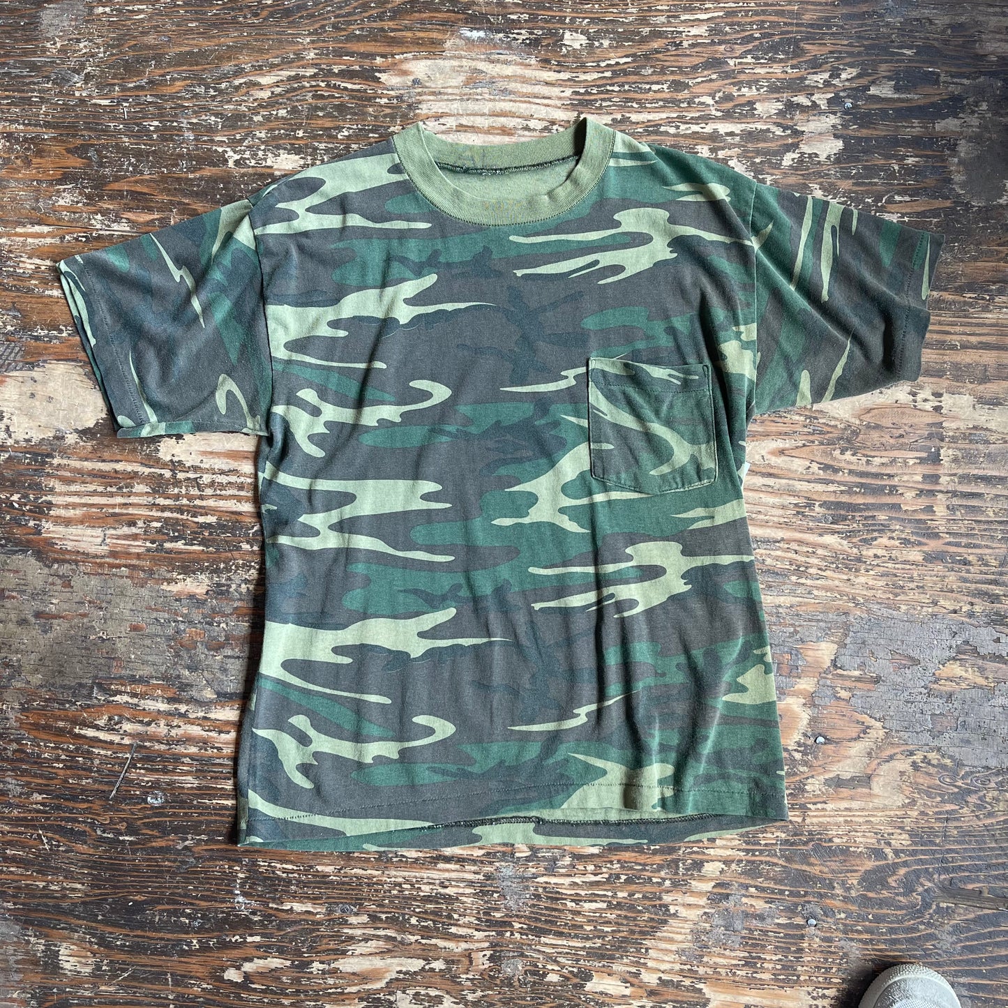 Single stitch camo tee in perfect condition. Featured pocket on left side of chest.