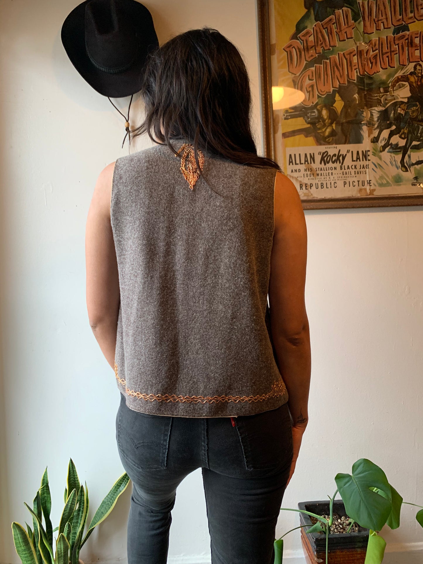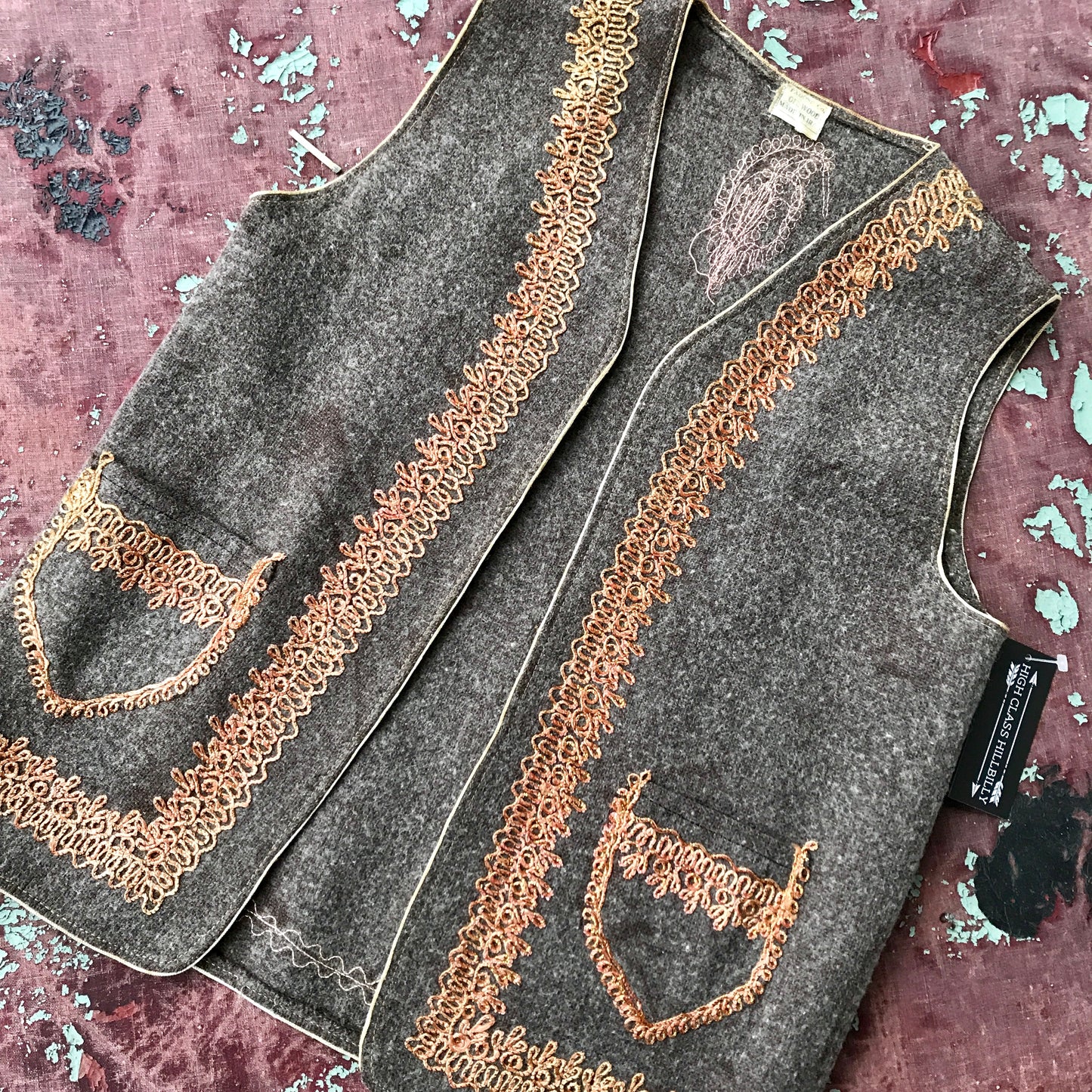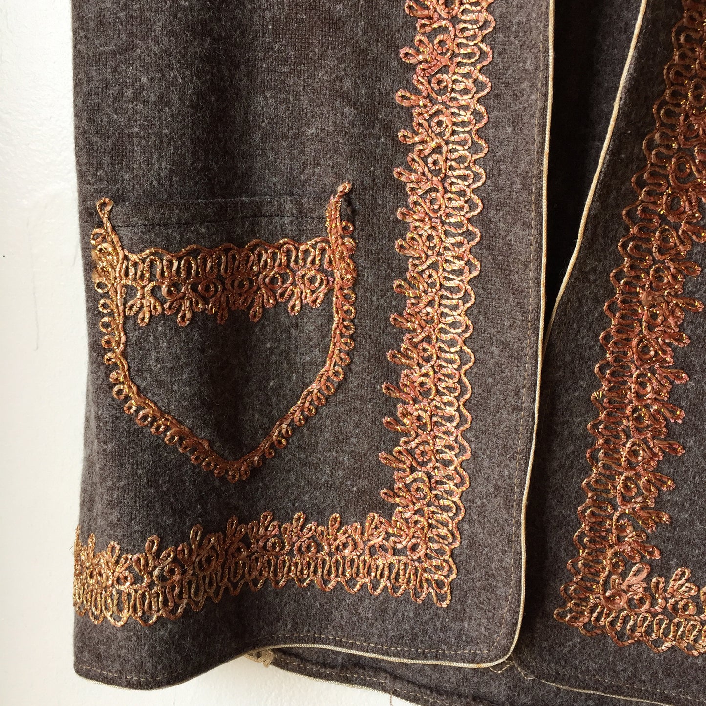 Gorgeous grey Iranian wool vest with beautiful rose gold embroidered detailed embellishments. In great condition with no notable flaws