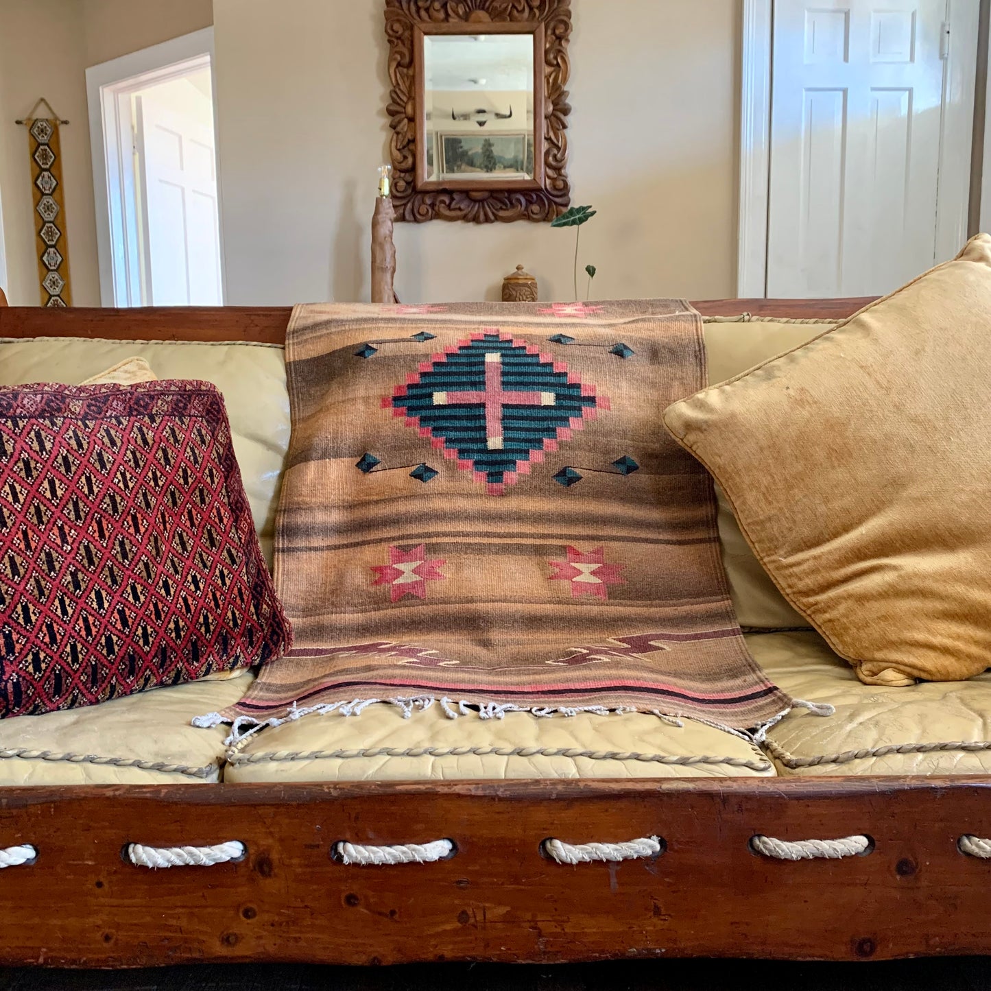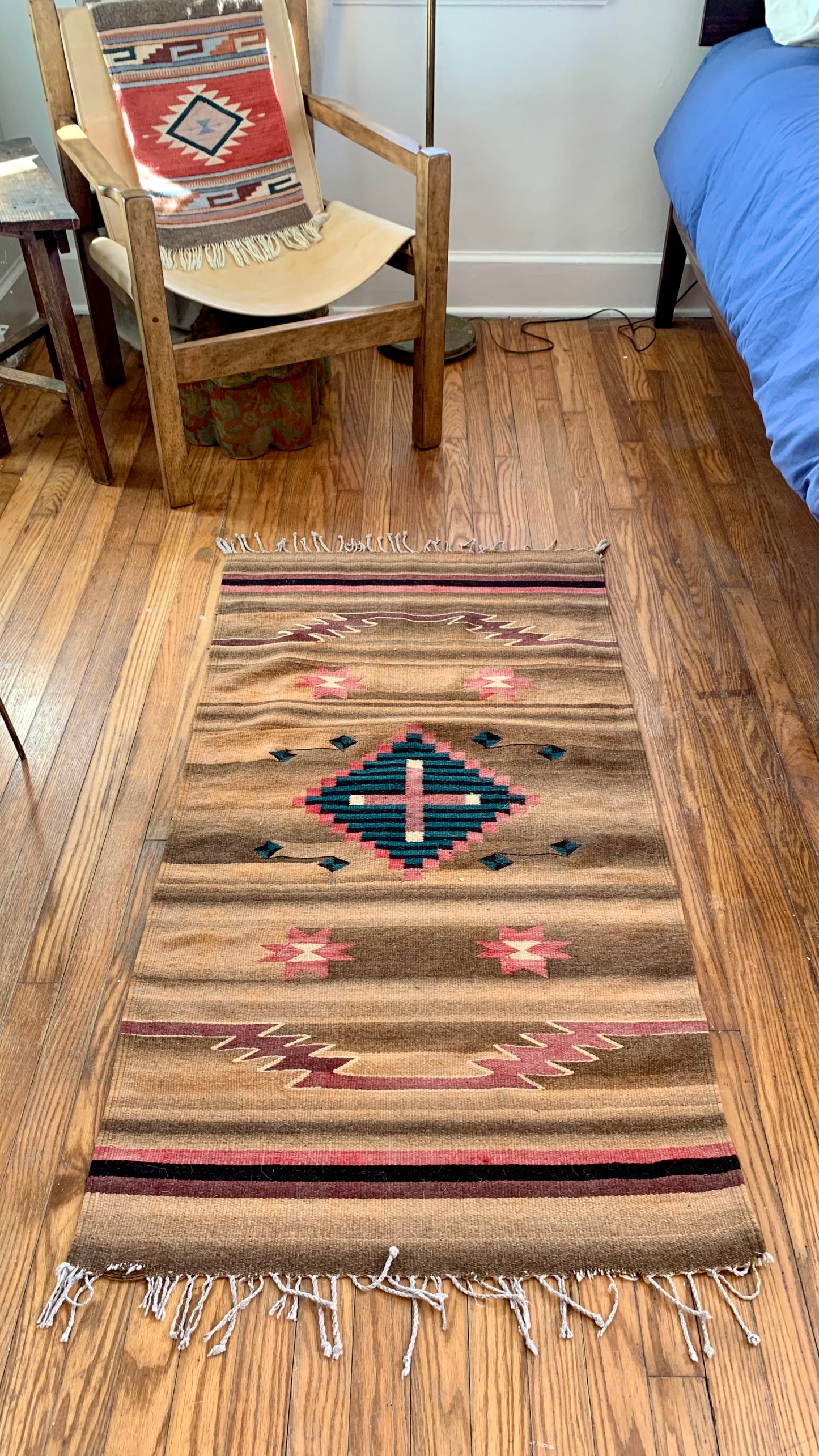 Vintage Southwestern Woven Wool Throw Rug 54" x 29.5"