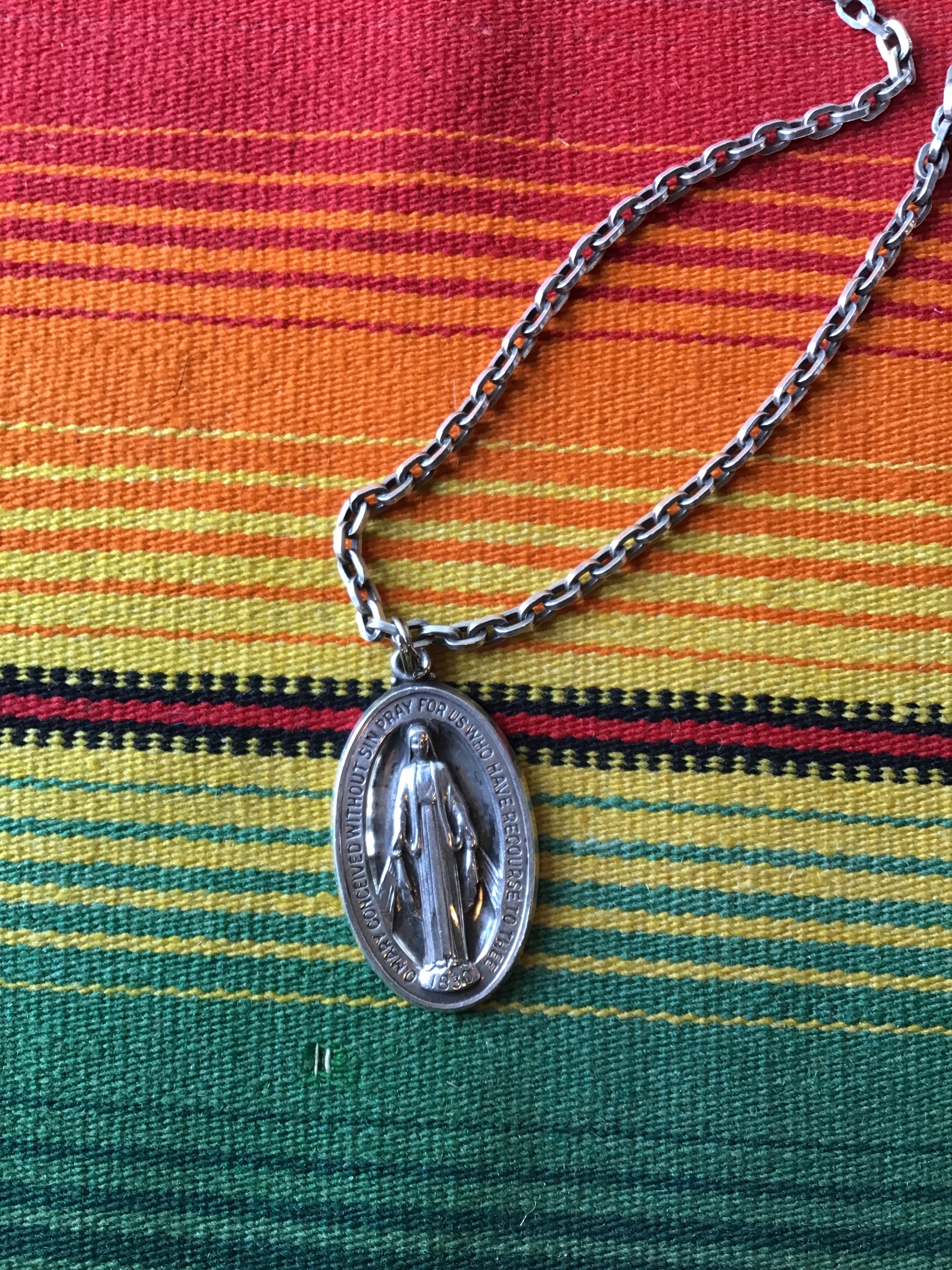 Vintage Sterling Mary Creed Pendant and Necklace 13 1/2”