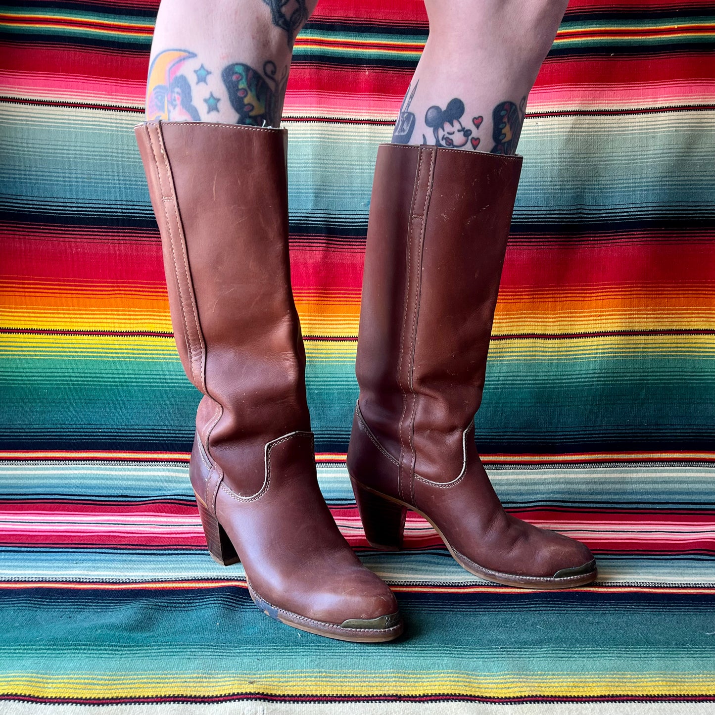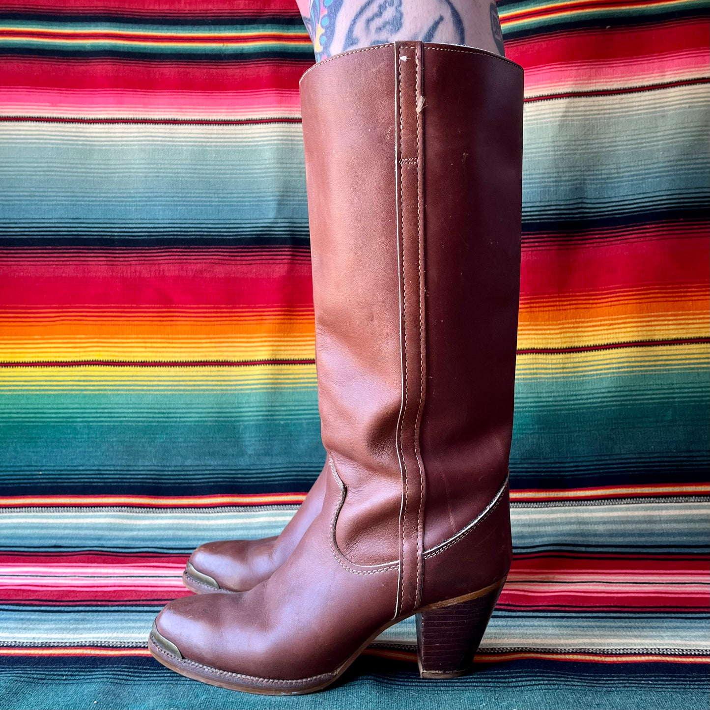 Vintage ZODIAC Tall Stacked Heel Reddish Brown Leather Boots Size 8 N