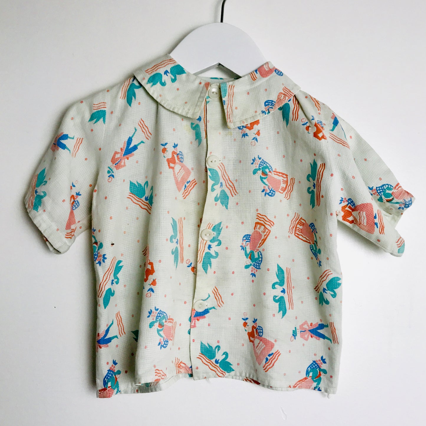 Tiny & cute vintage kid's soft button down shirt in excellent vintage condition. Thin & lightweight, feels like cotton. No flaws to note.