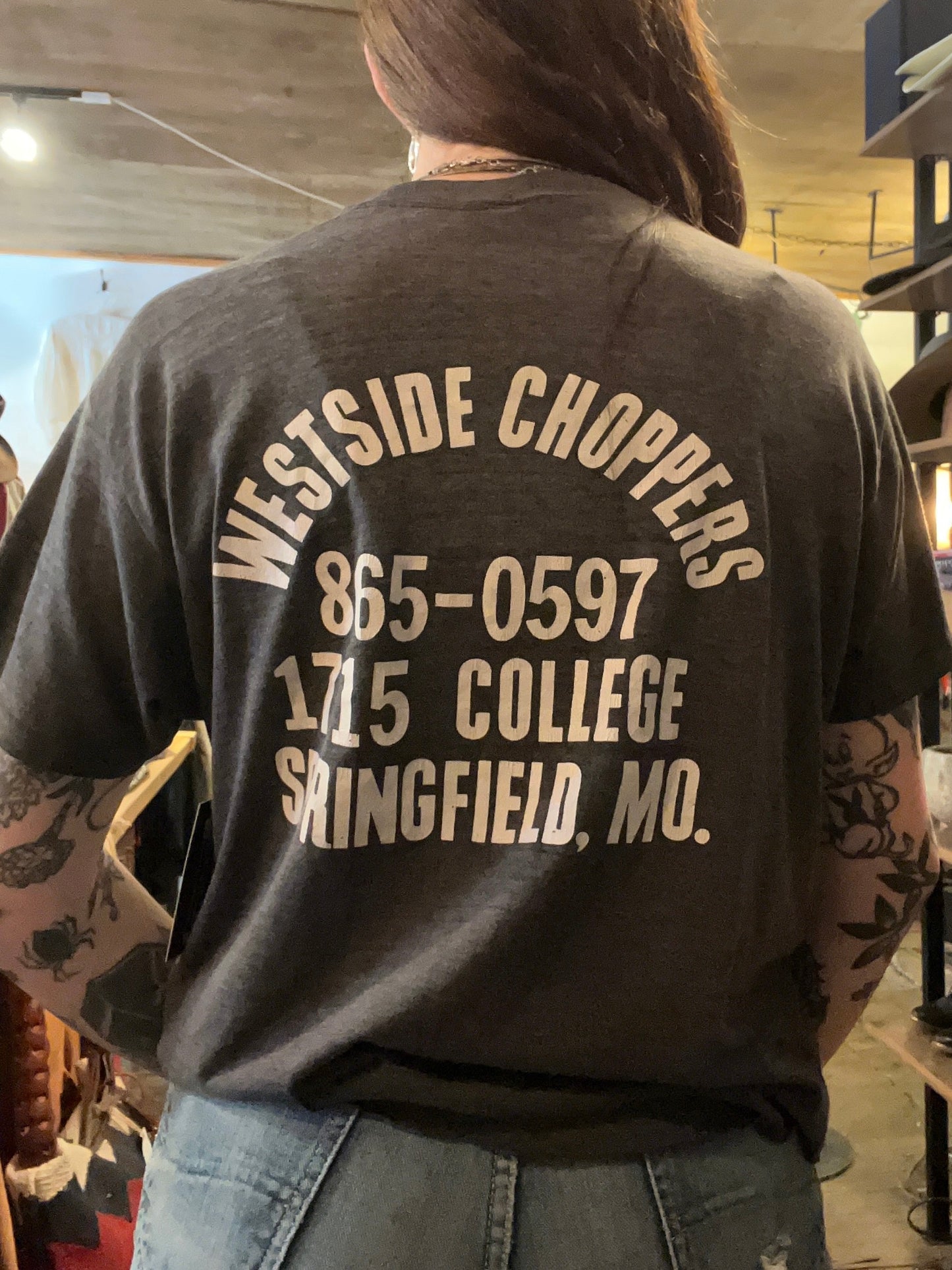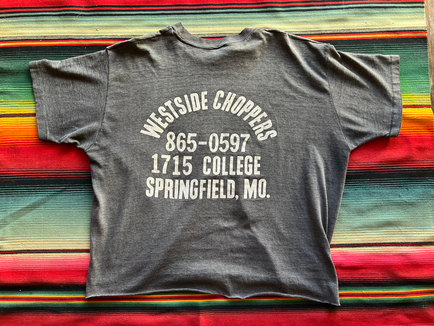 Amazing vintage Westside Chopper Tee. Super soft, this top features front and back graphics. Dark heather grey with white graphics.